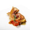 Muslos de pollo cocinados en horno a vapor con un toque de pimienta negra.