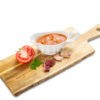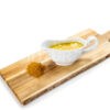 Salsa de color blanquecino de textura suave y cremosa, sabor dulce, y un tenue aroma a humo, ideal para acompañar cualquier plato de pasta o carne.